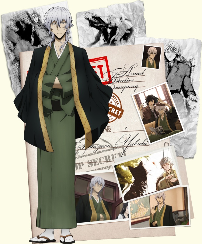 Президент Вооруженного Детективного Агентства. Мастер боевых искусств. Практически всегда собран и хладнокровен.